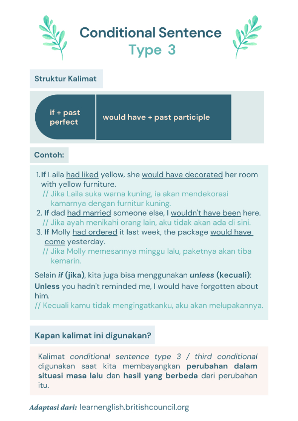 Contoh percakapan conditional sentence type 3.